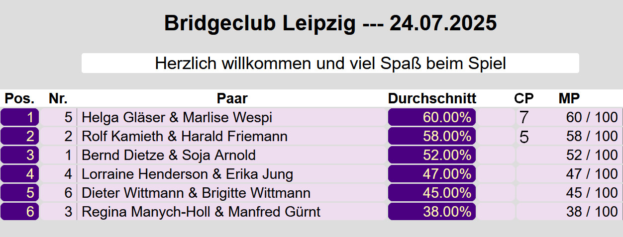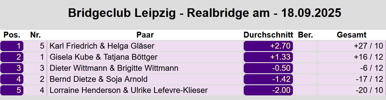 Turniere bei Real-Bridge