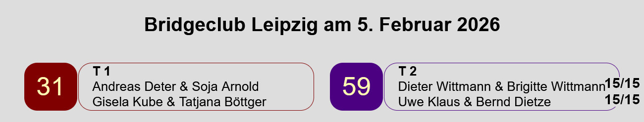 | Paarturnier | 02.02.2026 | Ergebnis | Details bei Realbridge | PBN-Datei |